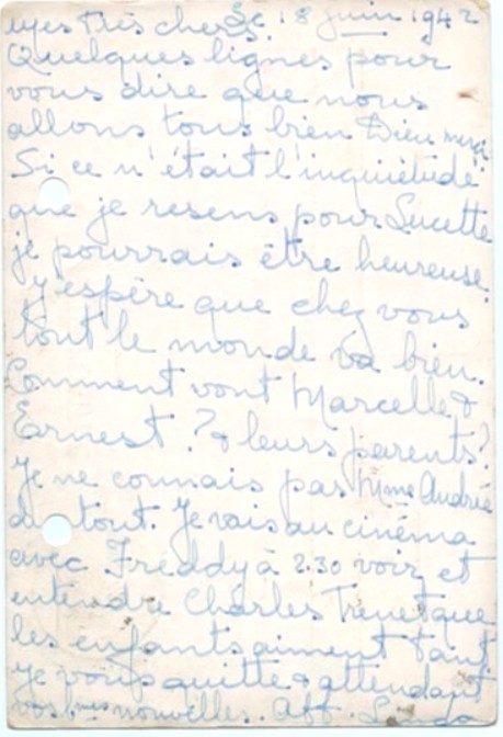Mes très chers                                                                                               Le 27 juin 1942