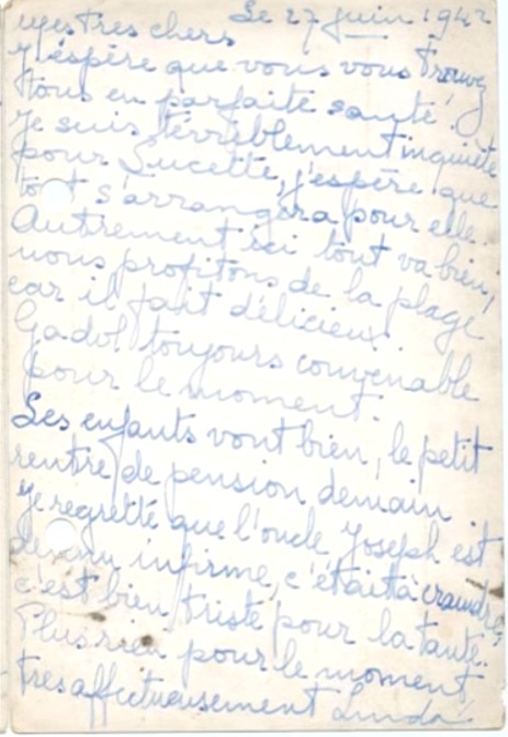 Lettre du 27 juin 1942