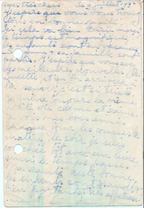 Lettre du 09 juillet 1942