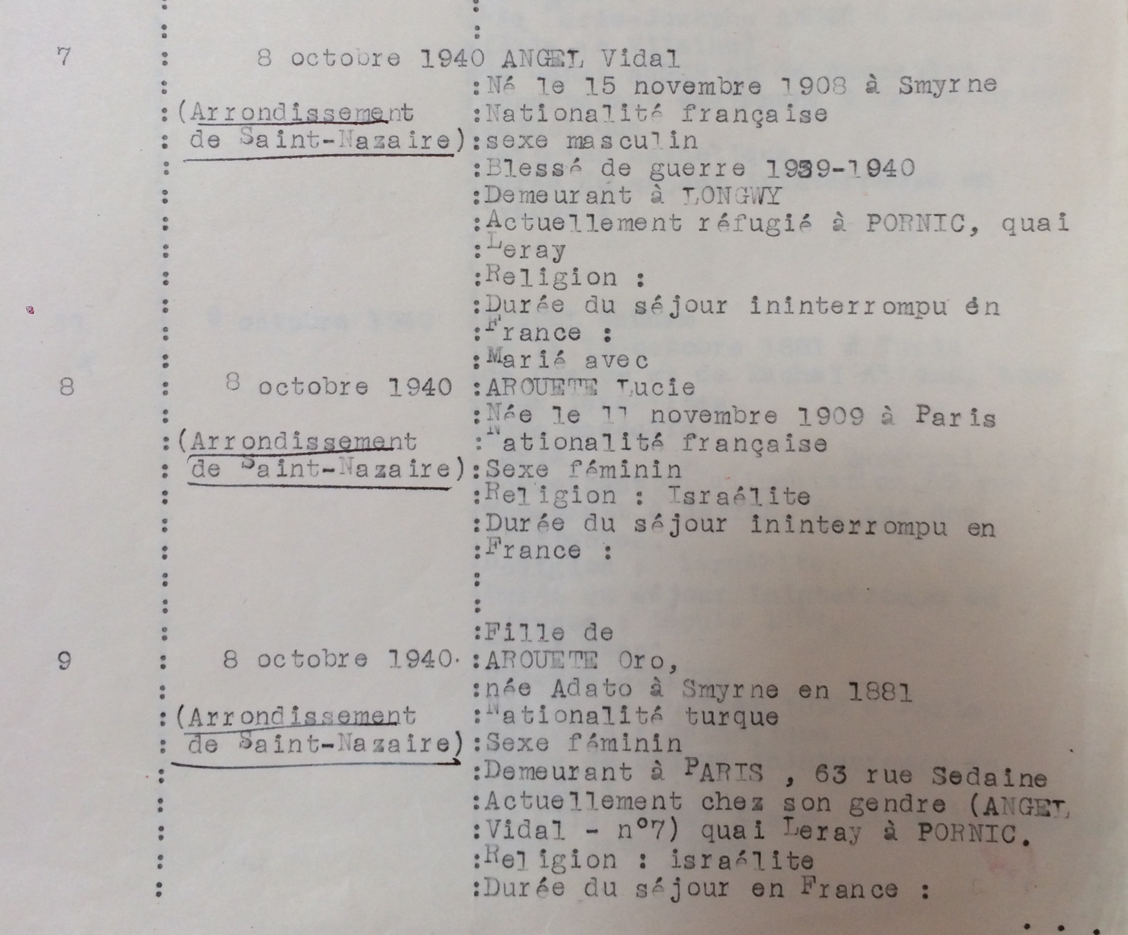 ![Extrait registre dactylographié du recensement [ADLA 1694W25]](https://shoahpresquile.com/wp-content/uploads/2019/08/01angelvidalrecensementnantes1694w25-1.jpg?w=1024)