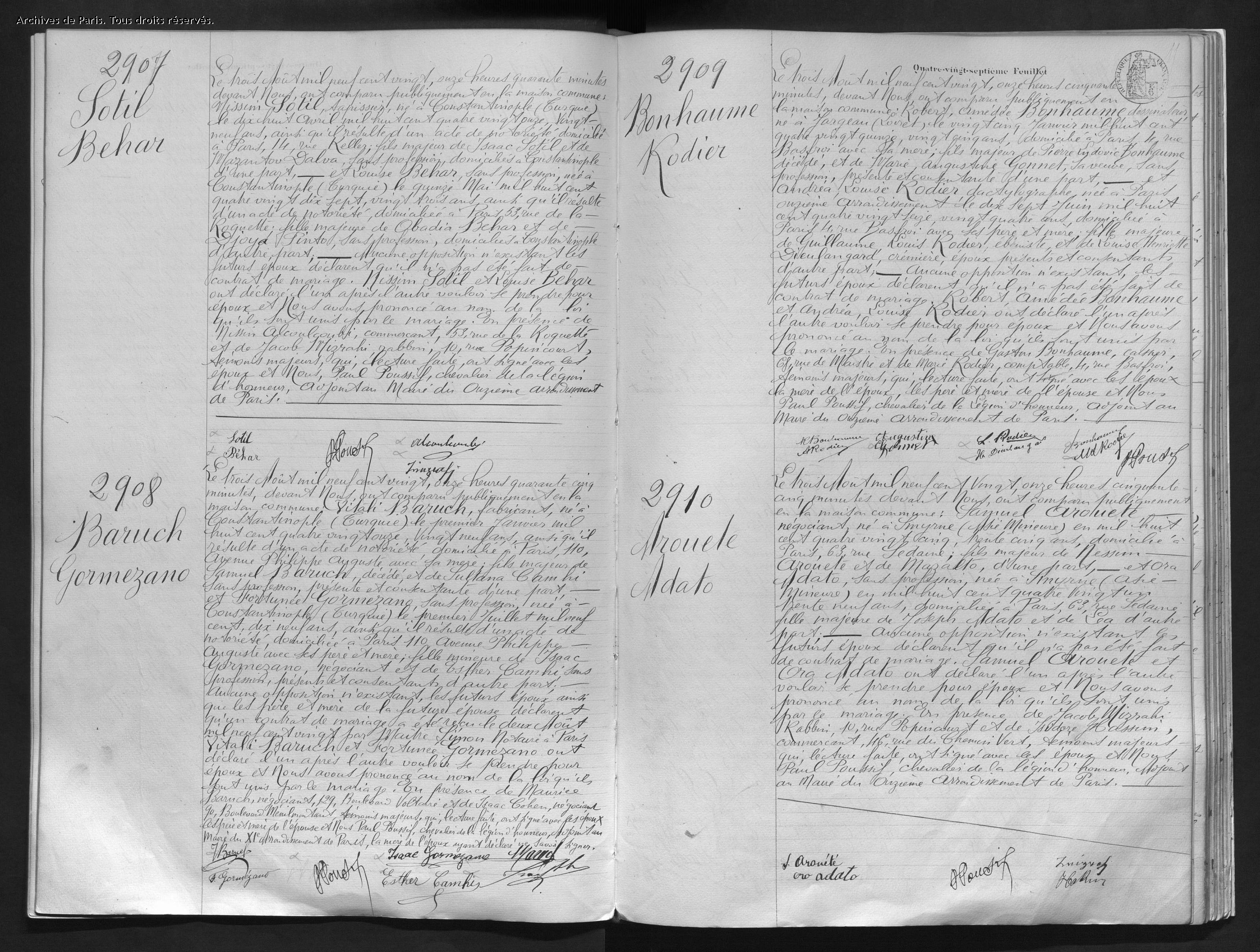 ![Acte de MAriage de Samuel AROUETE et Oro ADATO [Archives Municipales de Paris, en ligne]](https://shoahpresquile.com/wp-content/uploads/2019/08/arouetemariage11m502_0087.jpg?w=1024)