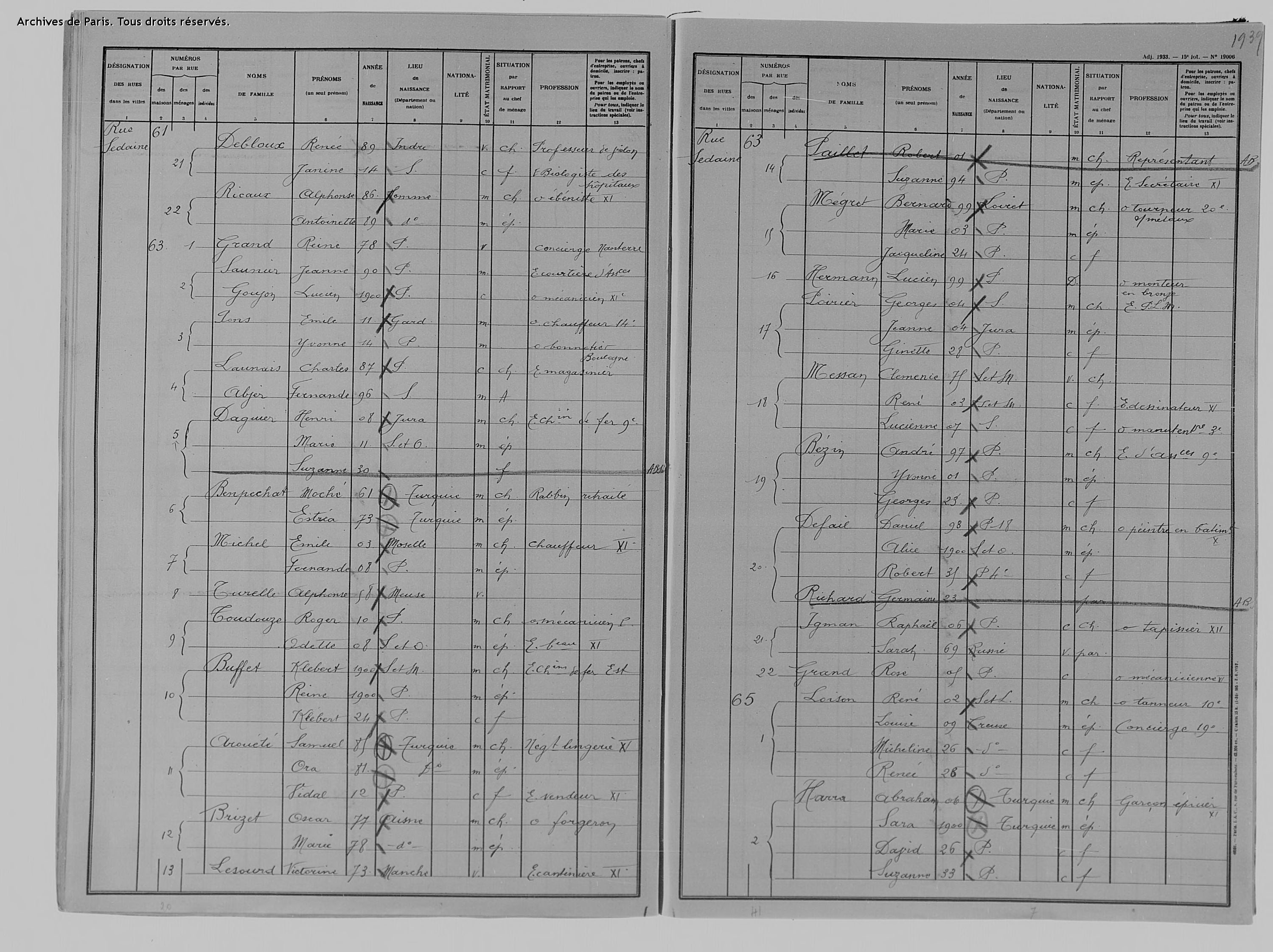 C’est son nom qui apparaît sur les listes de recensement car Samuel est retourné sur Paris à son domicile en Octobre 1940. Sur cette liste de recensement de Saint-Nazaire, elle est déclarée en tant que veuve avec un enfant. Il s’agit d’une erreur car Samuel et Oro ont au moins un autre enfant prénommé Léon.
