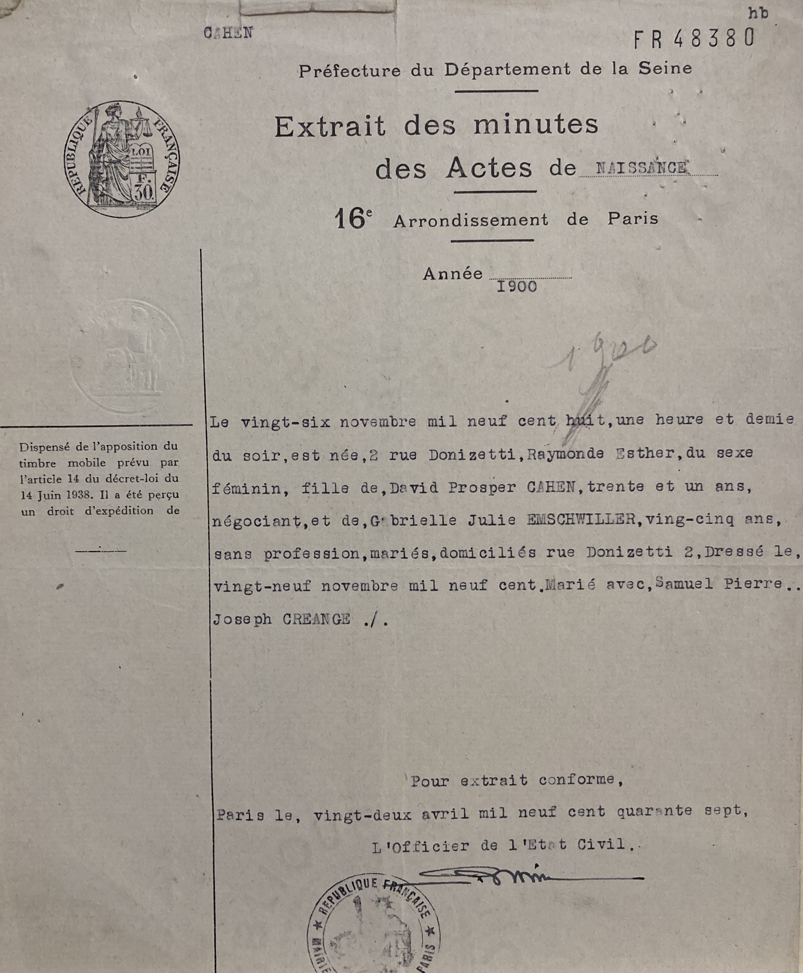 ![Acte de naissance de Pierre CREANGE [Archives Municipales Paris, en ligne]](https://shoahpresquile.com/wp-content/uploads/2019/09/creangepierreactenaissance.jpg?w=1024)