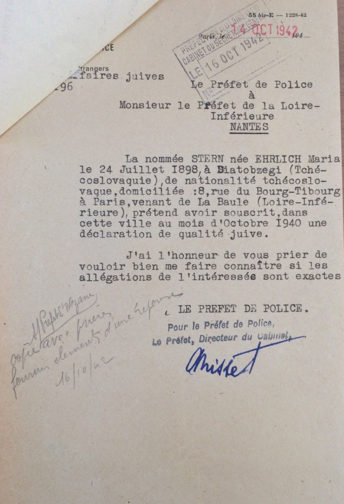 Elle quitte définitivement La Baule pour Paris le 25 janvier 1941 au 115, rue Saint-Honoré dans le 1er arrondissement à Paris chez Mme EISENBACH. Maria STERN n’a à priori pas été déportée.