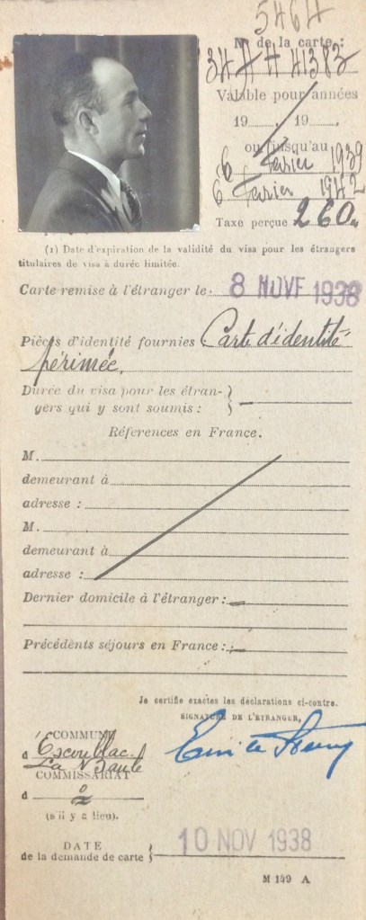 Fiches cartonnées dossier d’étranger d’Emil STERN [ADLA 4M727]