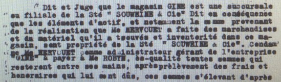 Un mois plus tard, le 20 juin 1941 une plainte est déposée par Maître ROBYN de Roubaix qui défend les intérêts de la famille SOUWEINE auprès du Tribunal de Commerce de Roubaix pour détournement de fonds avec saisie-arrêt des fonds détenus par Gabriel HERVOUËT. L’administrateur provisoire est condamné à rembourser les fonds de la vente du commerce auprès de l’avocat, ce qu’il fait.