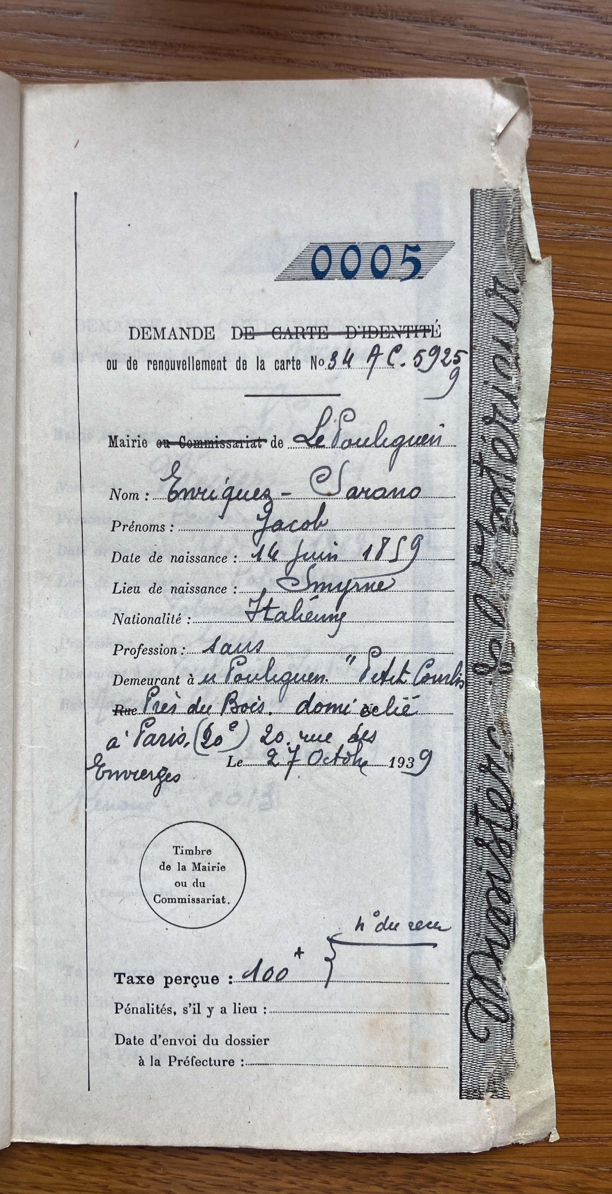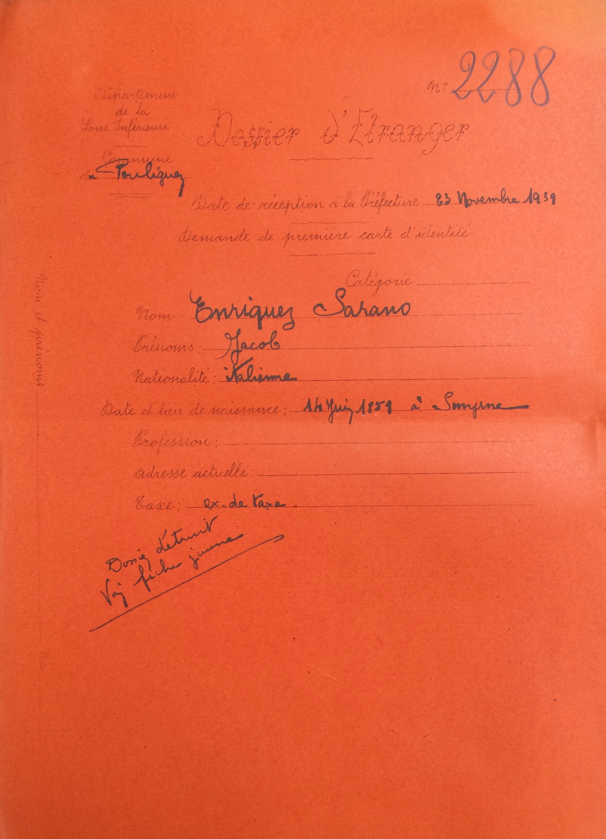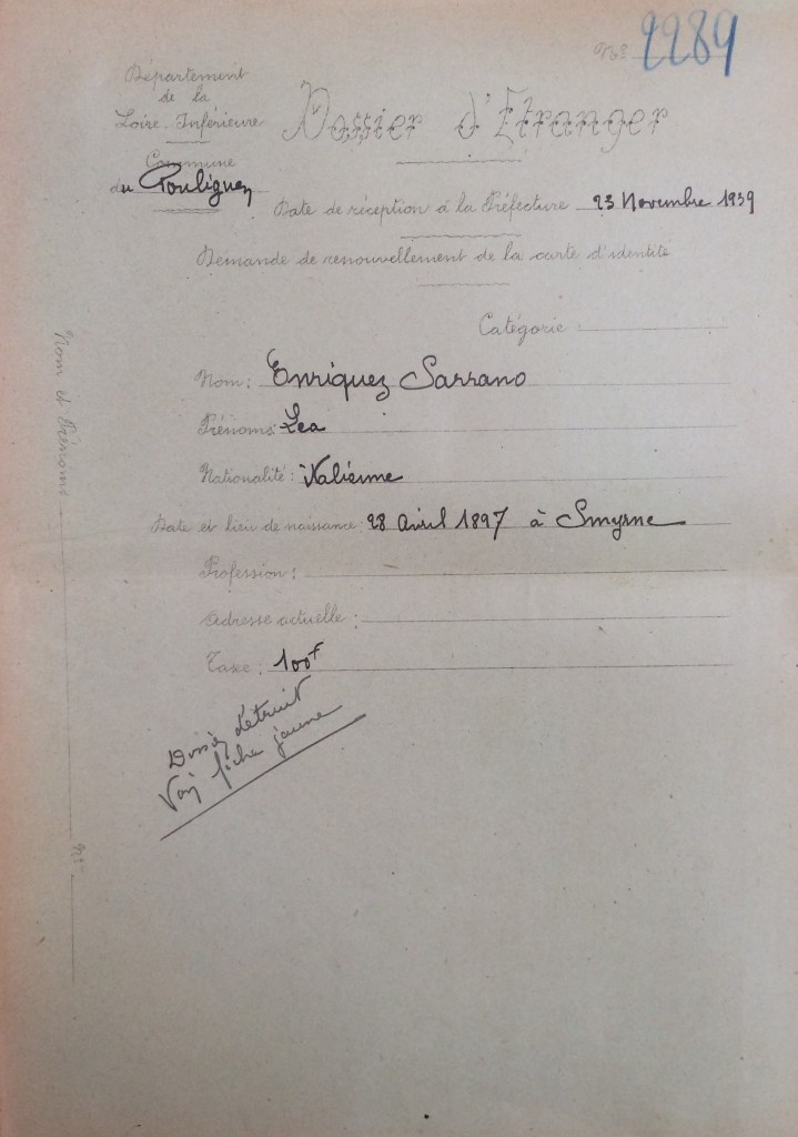 En octobre 1939, ils effectuent une demande de renouvellement de carte d’identité pour étrangers auprès de la mairie du Pouliguen, demande transmise à la Préfecture de Loire-Inférieure.