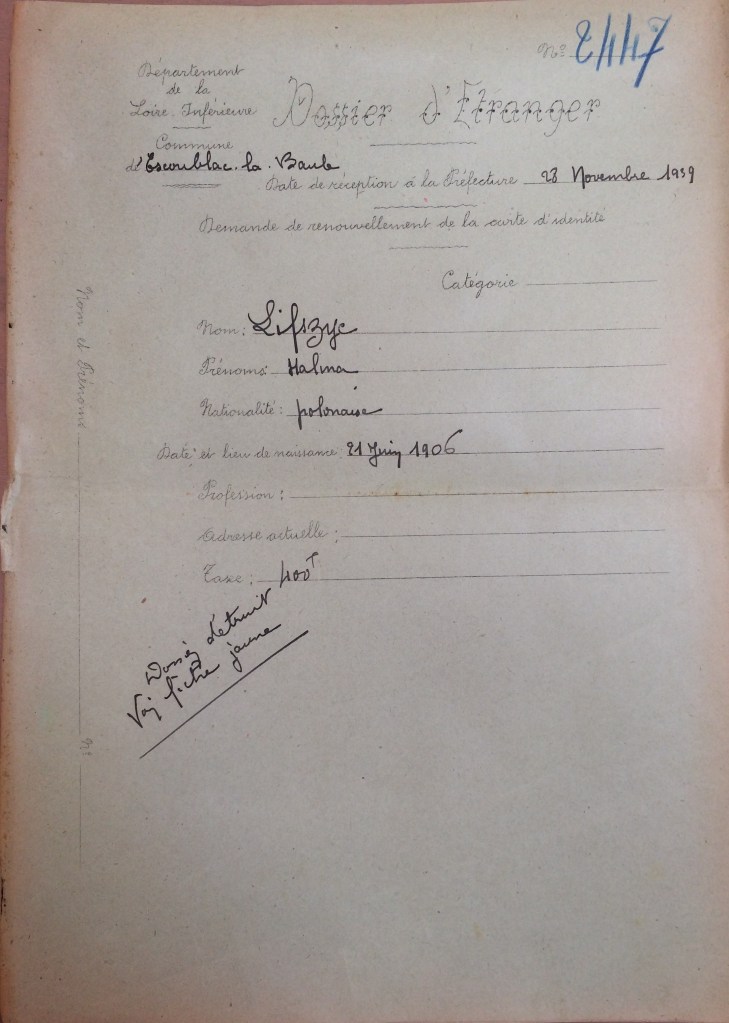 Halina LIFSZYC est réfugiée à La Baule entre le 07 novembre 1939 et début septembre 1940.