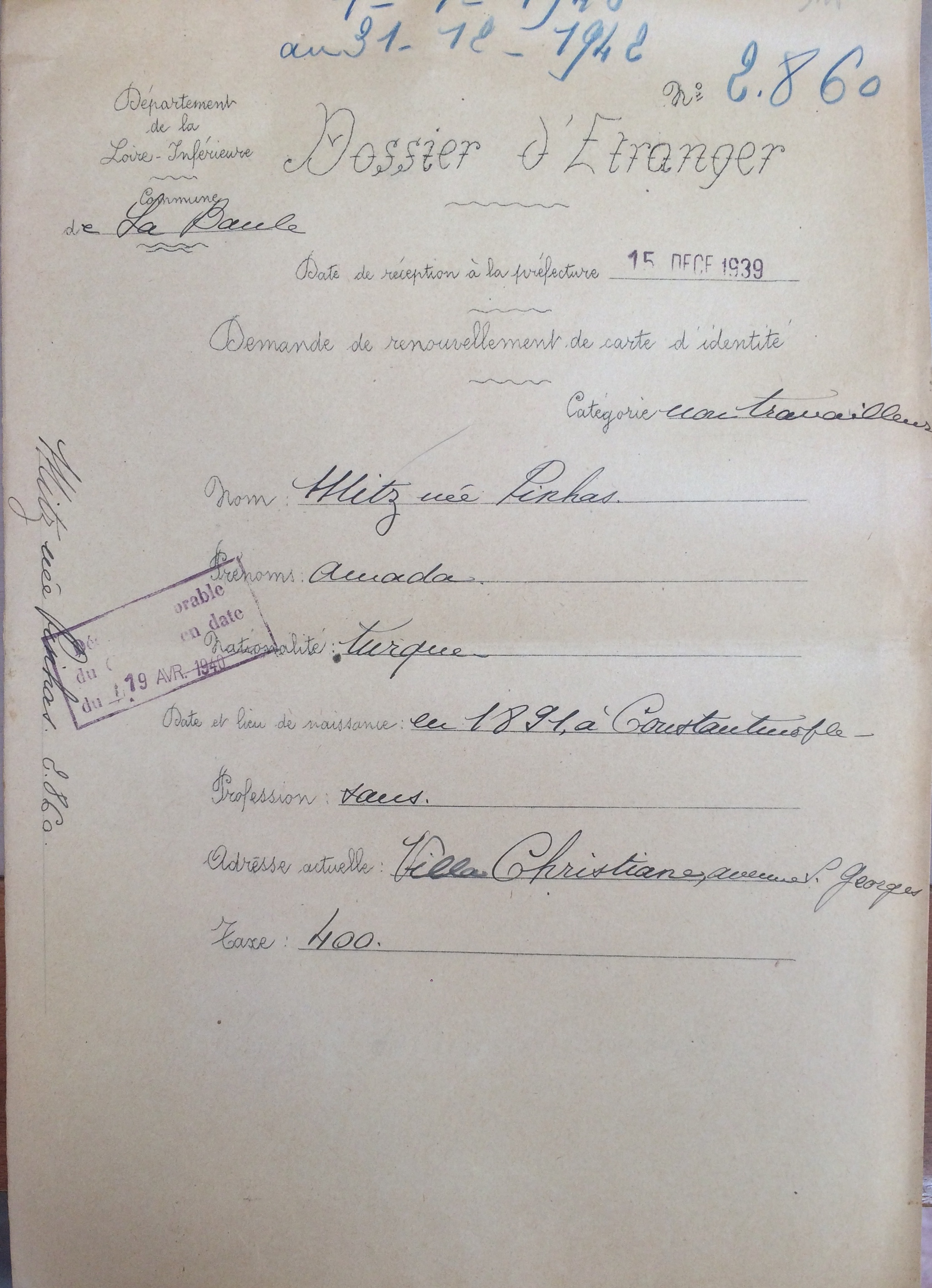 Amada et Sabetaï MITZ sont réfugiés à La Baule entre 1939 et 1940.