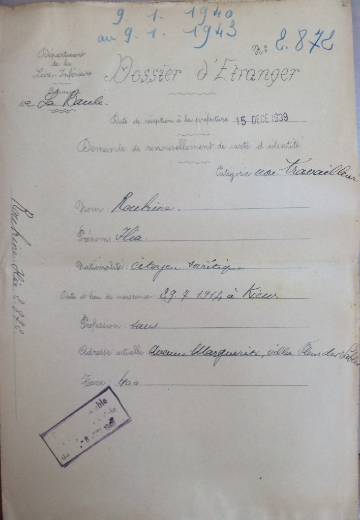 Ilya (ou Elia) ROUKINE est réfugié à La Baule (peut-être avec sa famille) entre septembre 1939 et 1940.