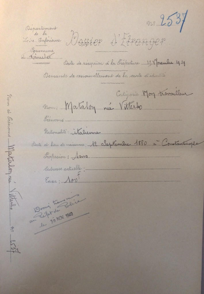 Dossier d’étranger de Marcelle MATALON [ADLA 4M940]