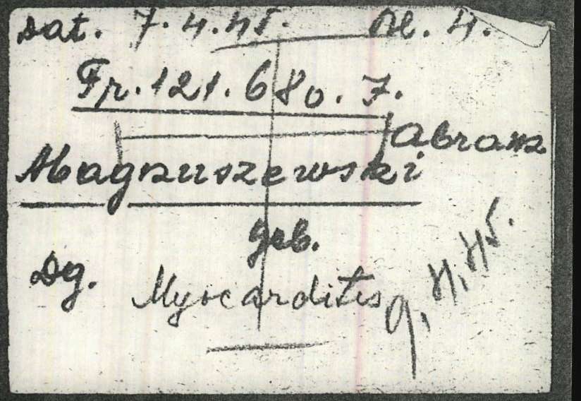 Un document portant la mention MAGNUSZEWSKI Abram (sans date de naissance), français, existe dans le base de données d’ITS Bad Arolsen [Personal Files (male) – Concentration Camp Mauthausen]. Au 7 avril 1945, Abram est transféré sur le camp de Mathausen sous le matricule 121680 puis le 07 avril 1945 au Block 4 du camp d’Ebensee et est décédé le 09 avril 1945 pour je cite « Myocardite ». .