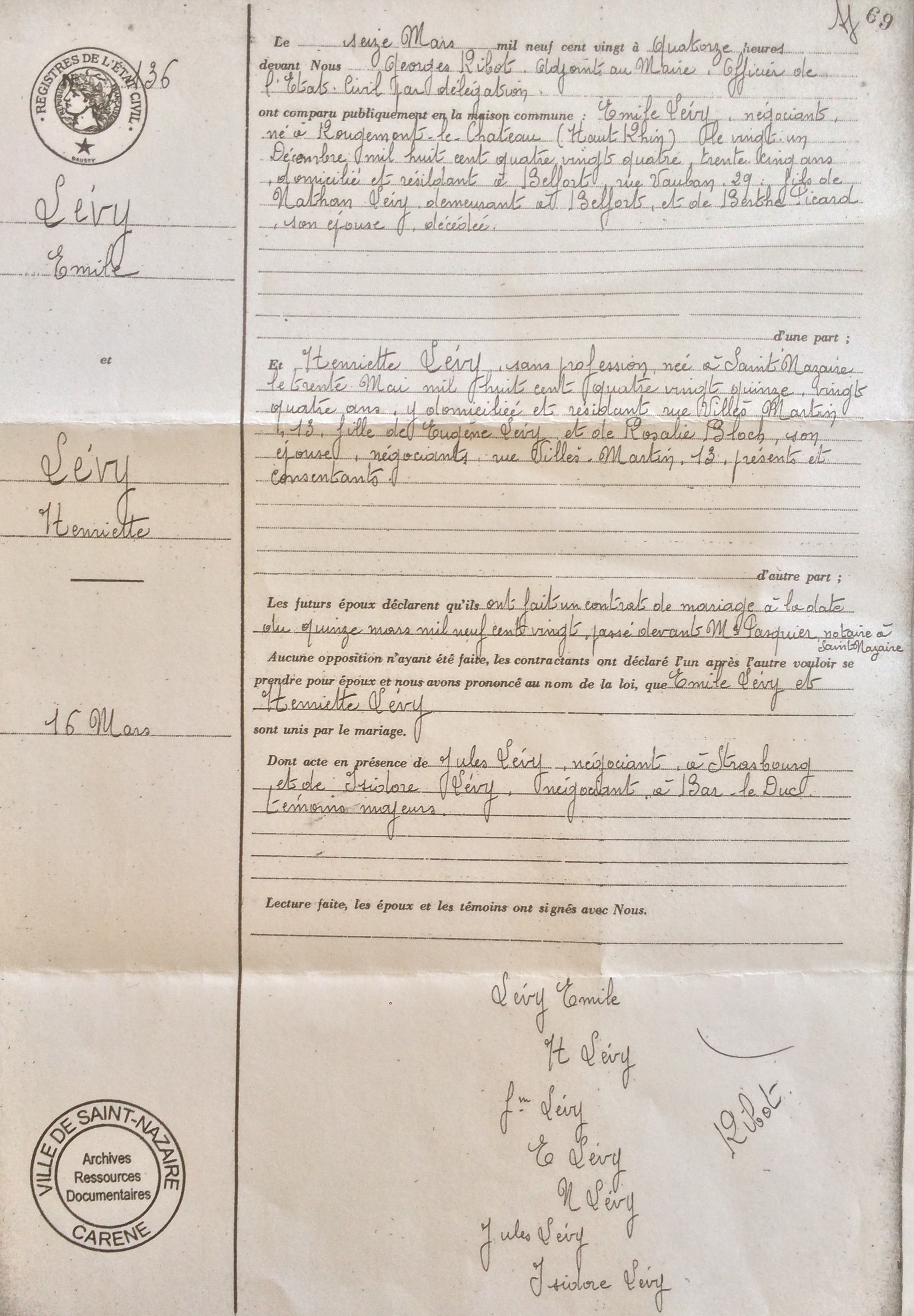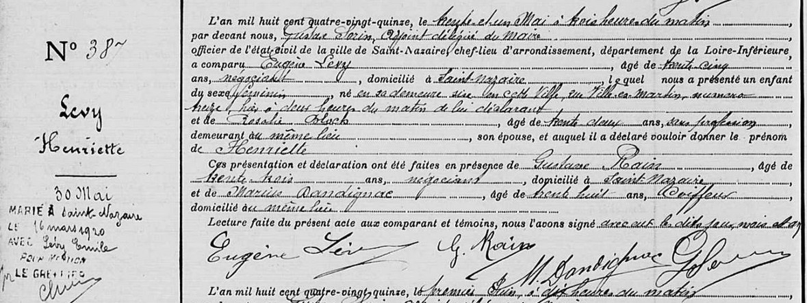 Henriette LEVY est la soeur d’ Armand LEVY et de Léopold, Lucien LEVY, tous nés à Saint-Nazaire.