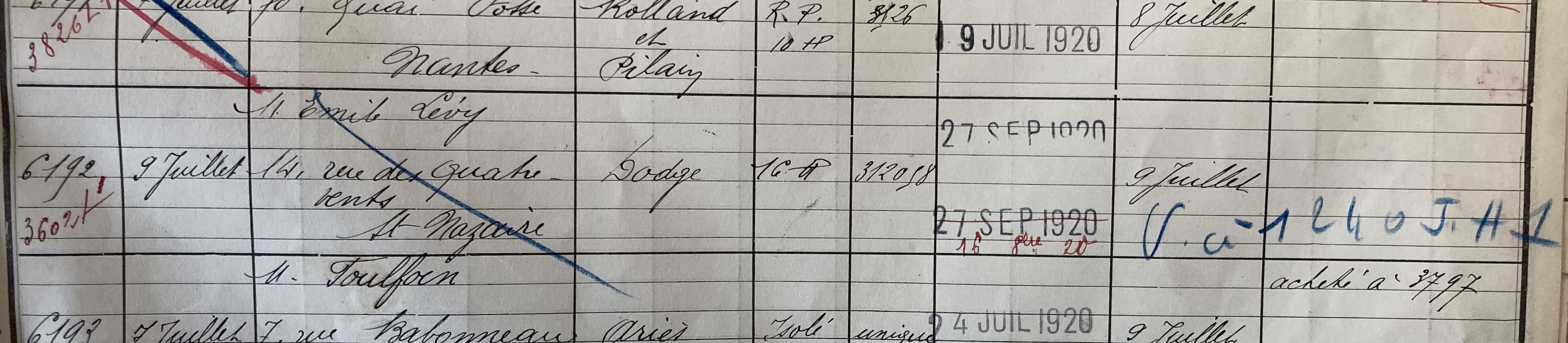 En 1920, peu de temps après son mariage, Emile LEVY fait l’acquisition d’une voiture, une Dodge Type 16HP qu’il revend au profit d’un autre véhicule de même marque en 1921.