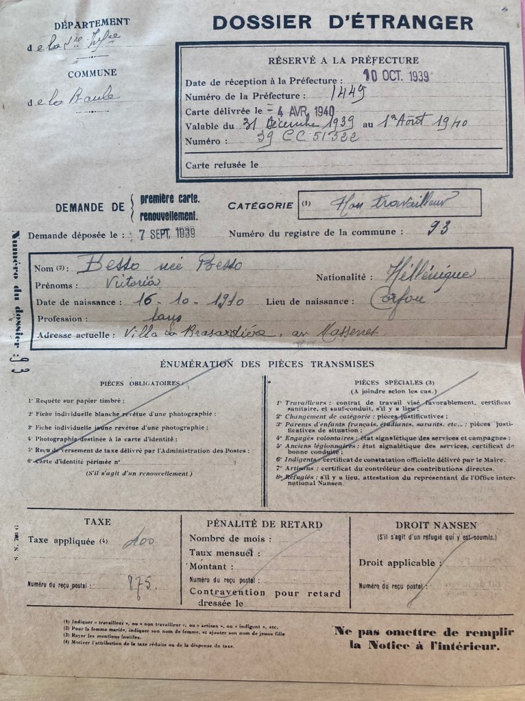 Dossier d’étranger de Victoria BESSO [ADLA 4M919]