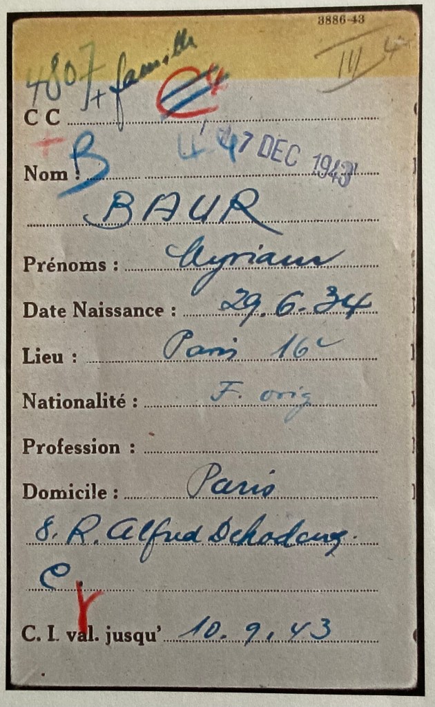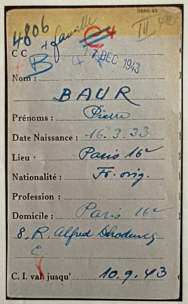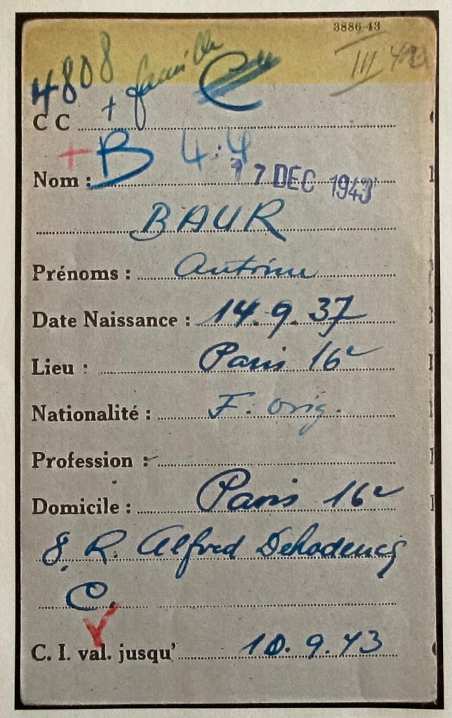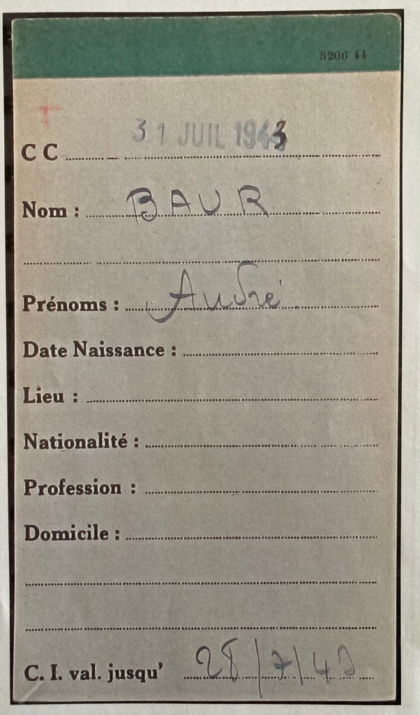 André Baur est resté à Paris sous l’Occupation avec son épouse et ses quatre enfants, Il noue alors des relations de confiance avec le Comité des Juifs immigrés de la rue Amelot. A la mi-mars 1942, confronté à une demande du SS Dannecker d’assurer le ravitaillement du premier convoi de déportation prévu en France, André Baur proteste dans une lettre adressée à Xavier Vallat daté du 26 mars 1942.