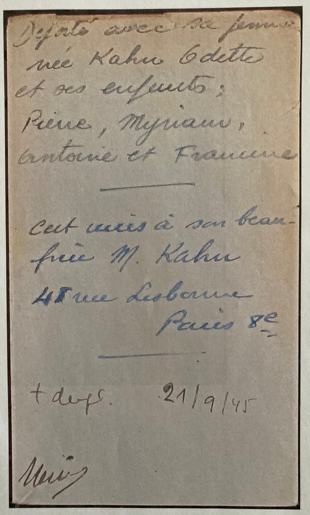 Les demandes de statuts de déportés politiques seront déposées par Macelle KAHN mère d’Odette après-guerre et des feuilles de témoignage seront déposées auprès de Yad Vashem par des membres de la famille en leur mémoire.