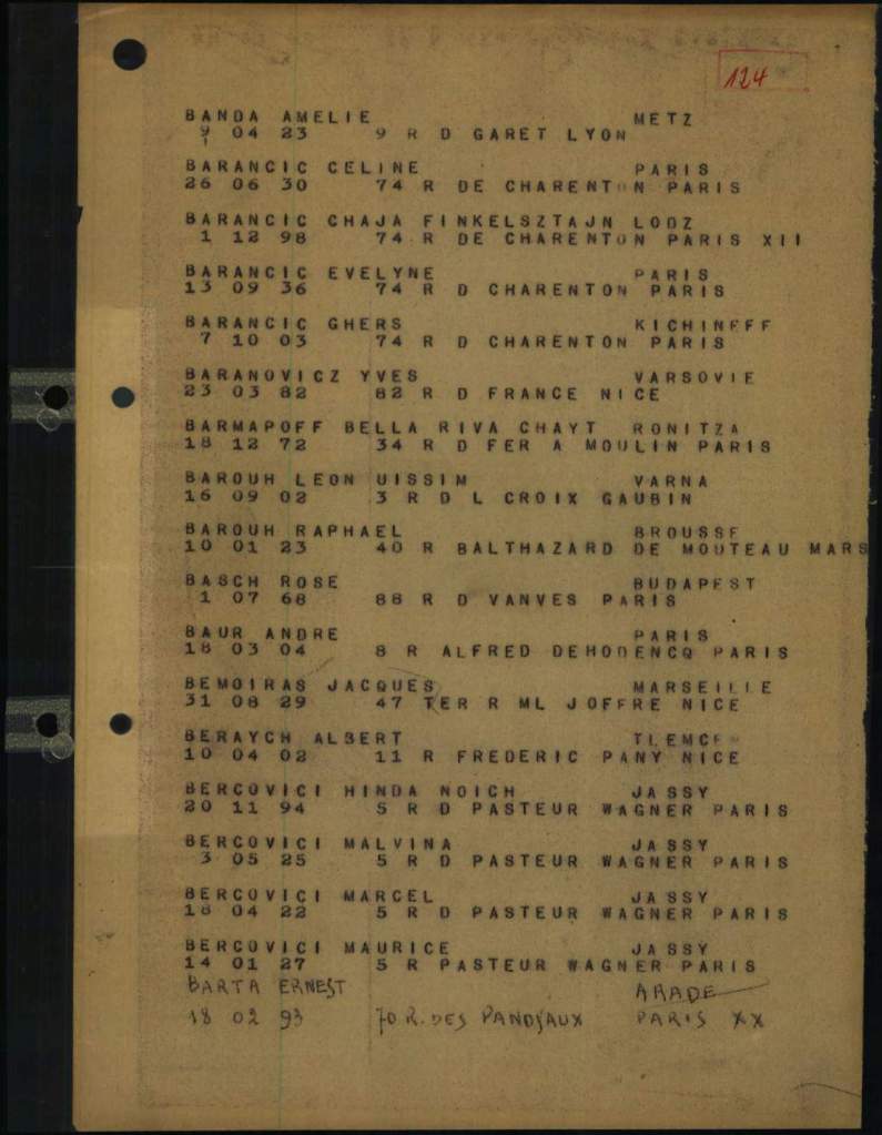 sources : CDJC/Memorial de la Shoah, Paris, France ; Division des Archives des Victimes des Conflits Contemporains, Caen, France ; Archives Nationales, Pierrefitte-sur-Seine, France ; Archives Départementales de Loire-Atlantique, Nantes, France ; ITS Bad Arolsen, Allemagne ; Yad Vashem, Tel Aviv, Israël .