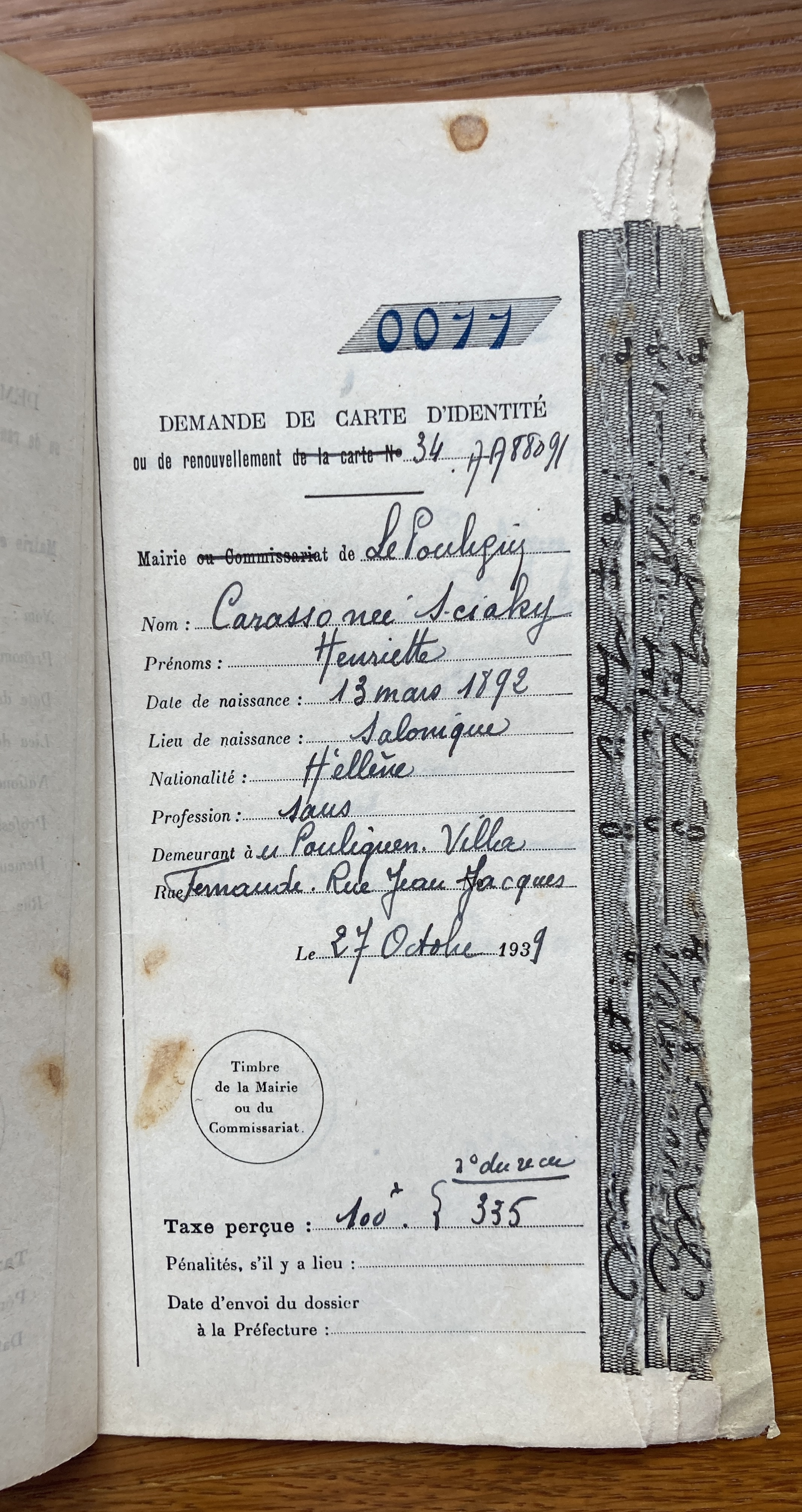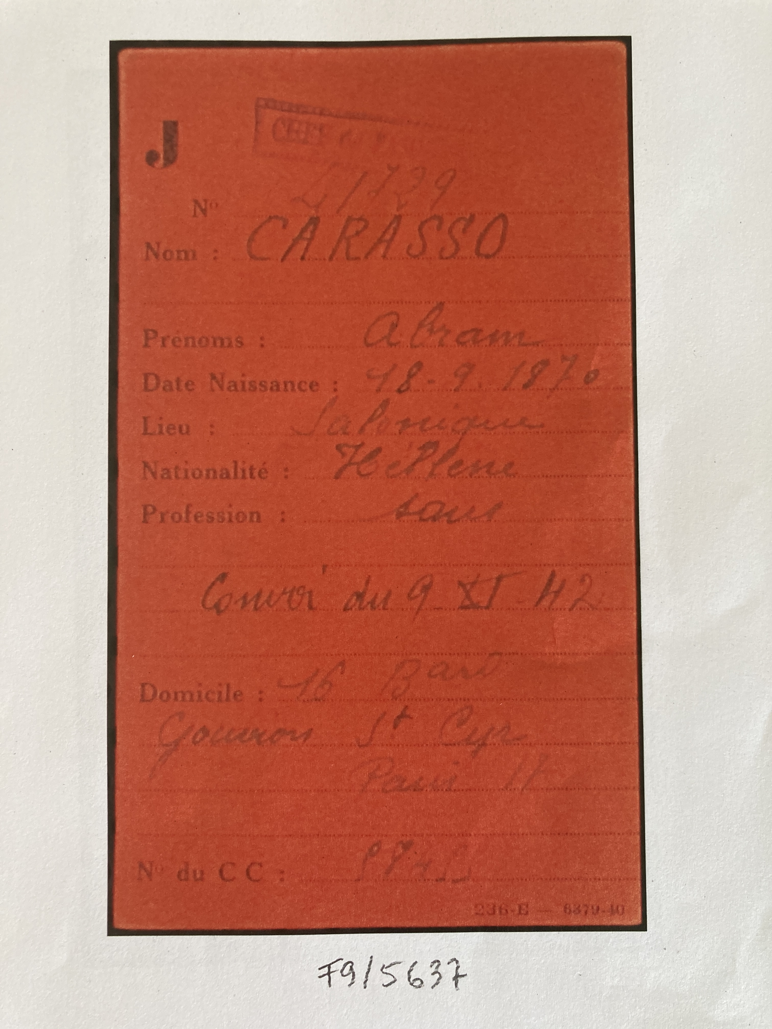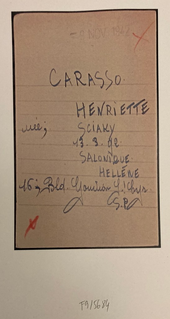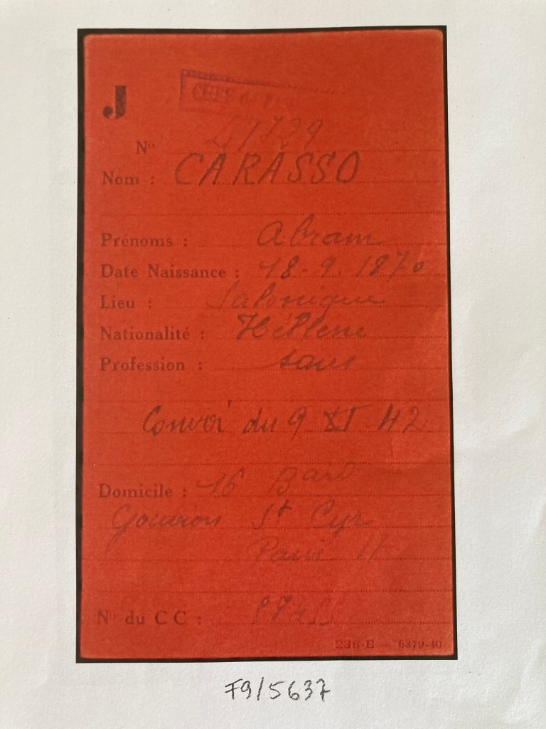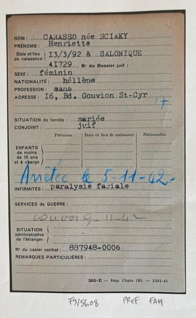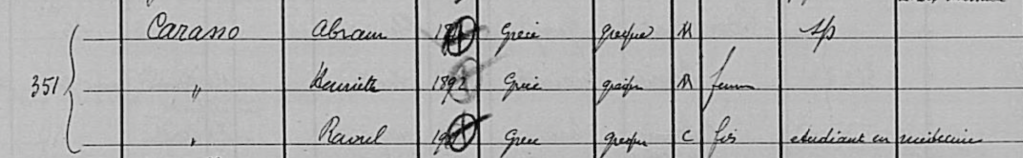 Abram et Henriette CARASSO sont réfugiés au Pouliguen au début de l’automne 1939. Abram est né le 16 septembre 1870 à Salonique et Henriette née SCIAKY est née le 13 mars 1892 à Salonique également.