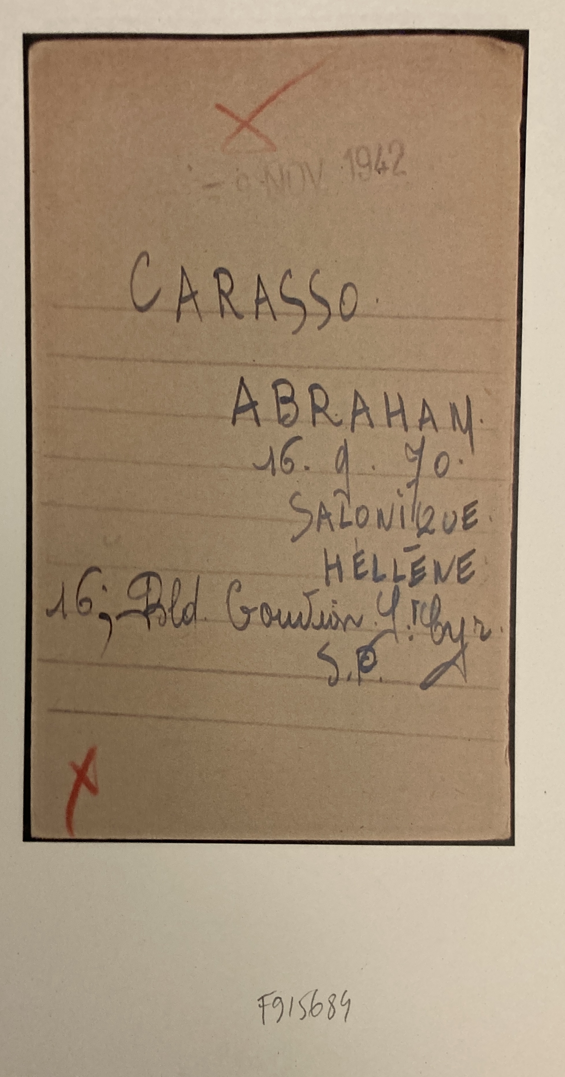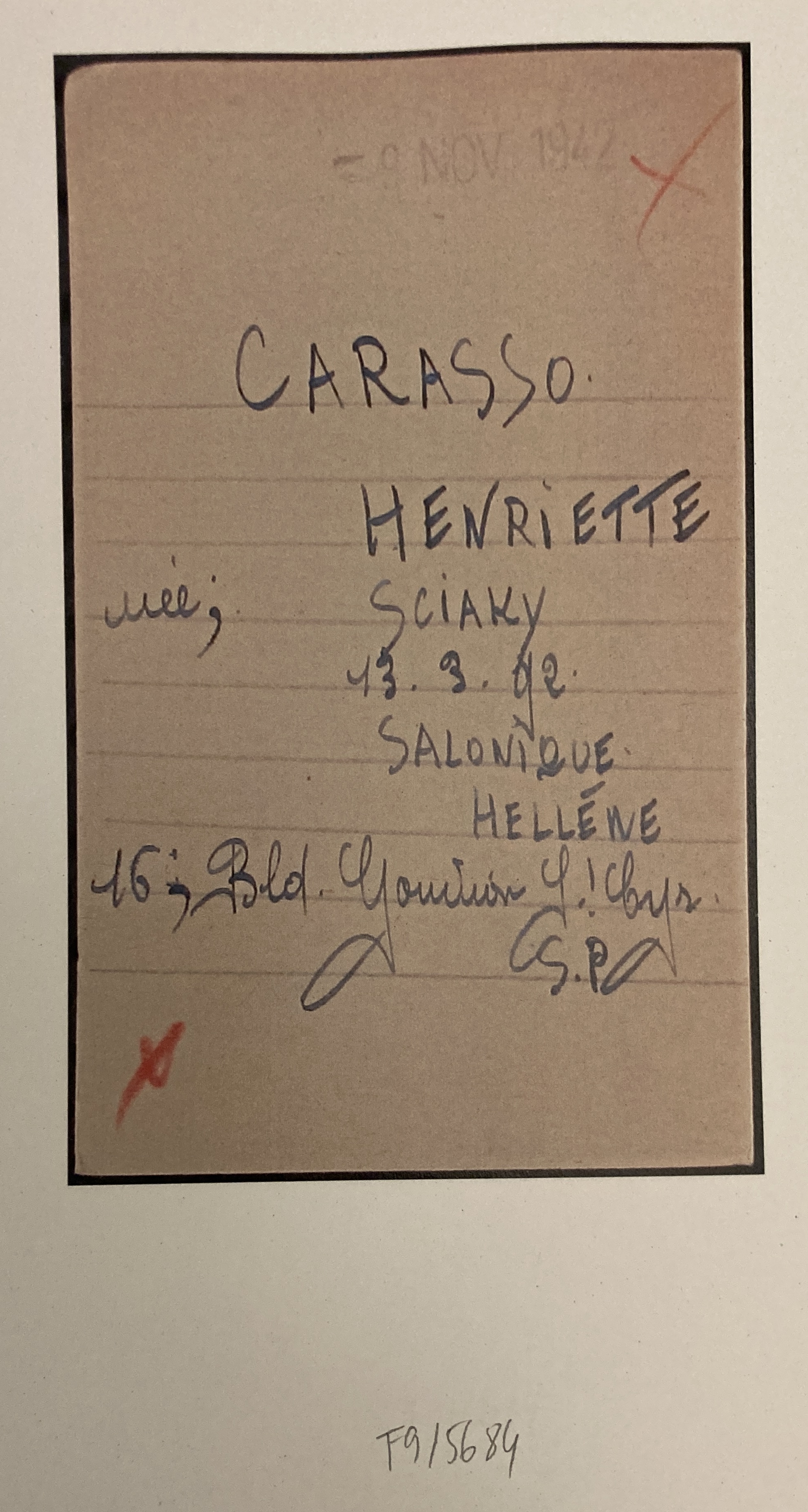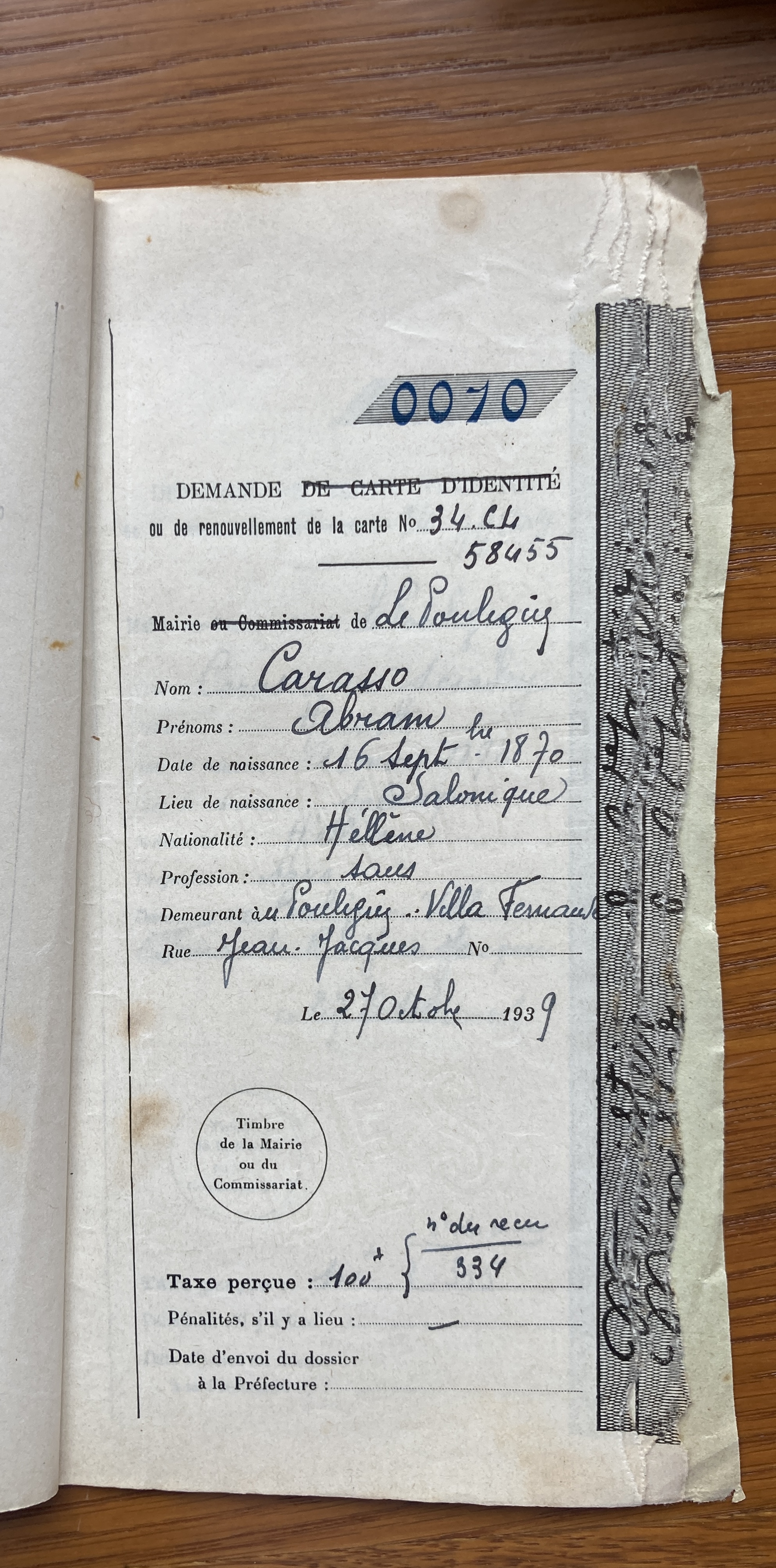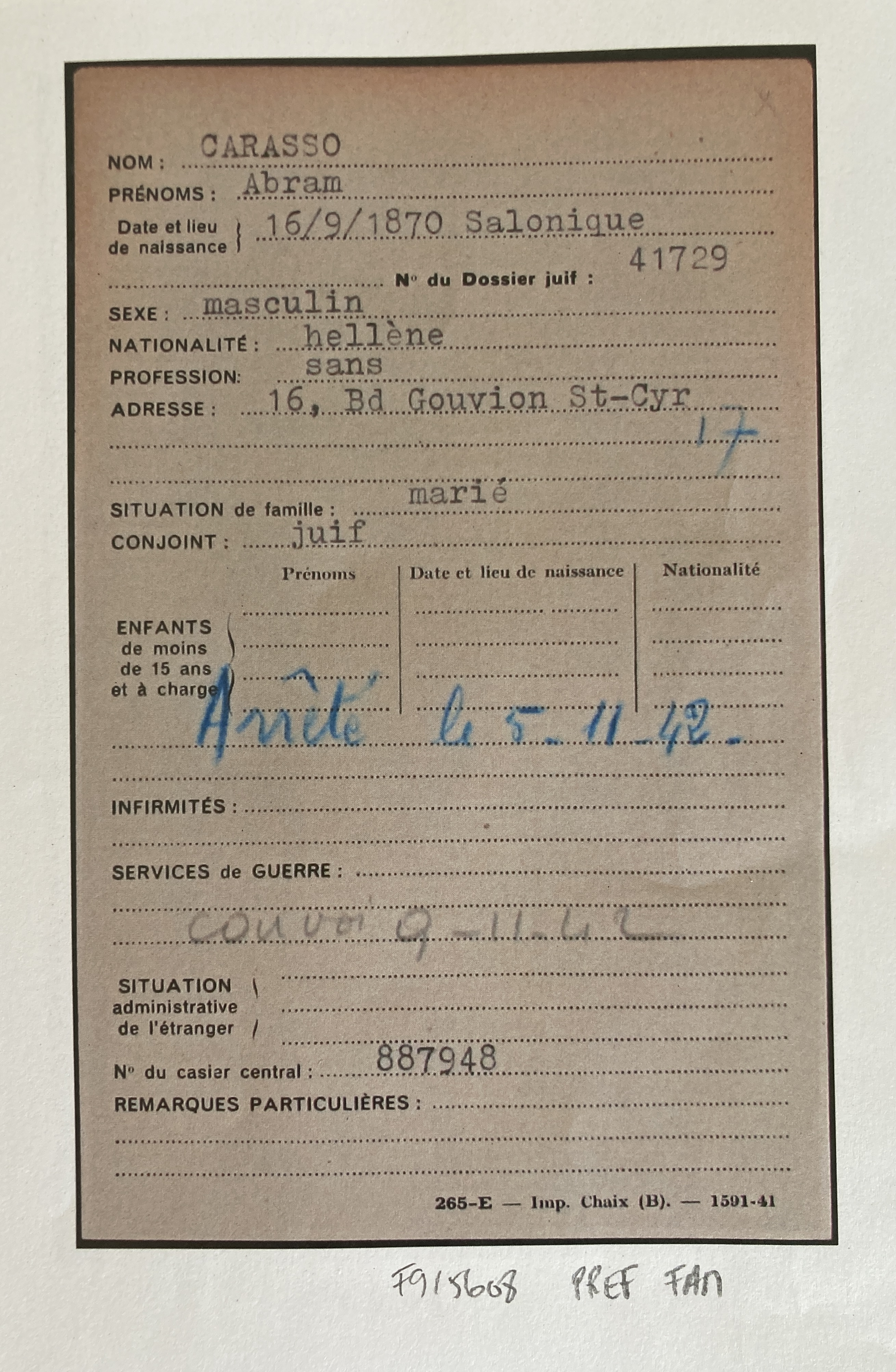 Abram et Henriette CARASSO sont réfugiés au Pouliguen au début de l’automne 1939. Abram est né le 16 septembre 1870 à Salonique et Henriette née SCIAKY est née le 13 mars 1892 à Salonique également.