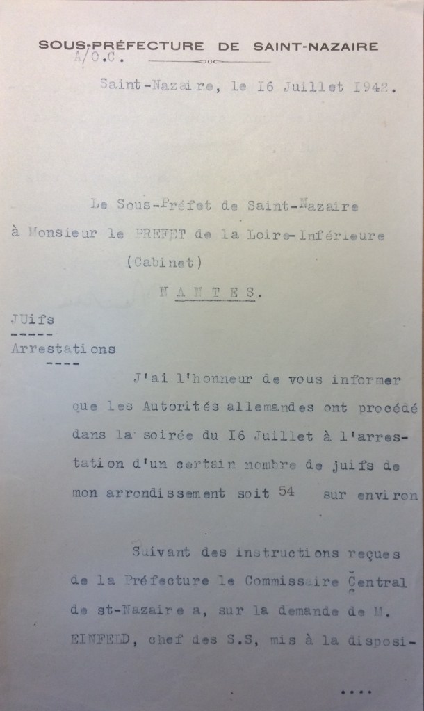 Soit au total 74 personnes arrêtées dans l’arrondissement de Saint-Nazaire (Jean NETTER et René ROSS ne sont pas arrêtés en tant que Juif mais en tant que Résistant).
